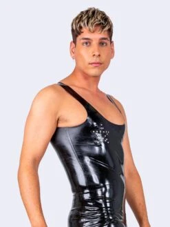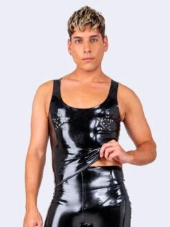 This bold latex vest top, features striking studded star-shaped embellishments across the chest. Combining high-fashion edge with fierce attitude, the top is a statement piece that celebrates individuality and self-expression. Perfect for those who love to stand out, its sleek latex finish and standout detailing make it a must-have for any wardrobe.