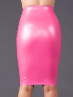 - The pencil skirt provides a narrow slim fit. It falls just below knee level.