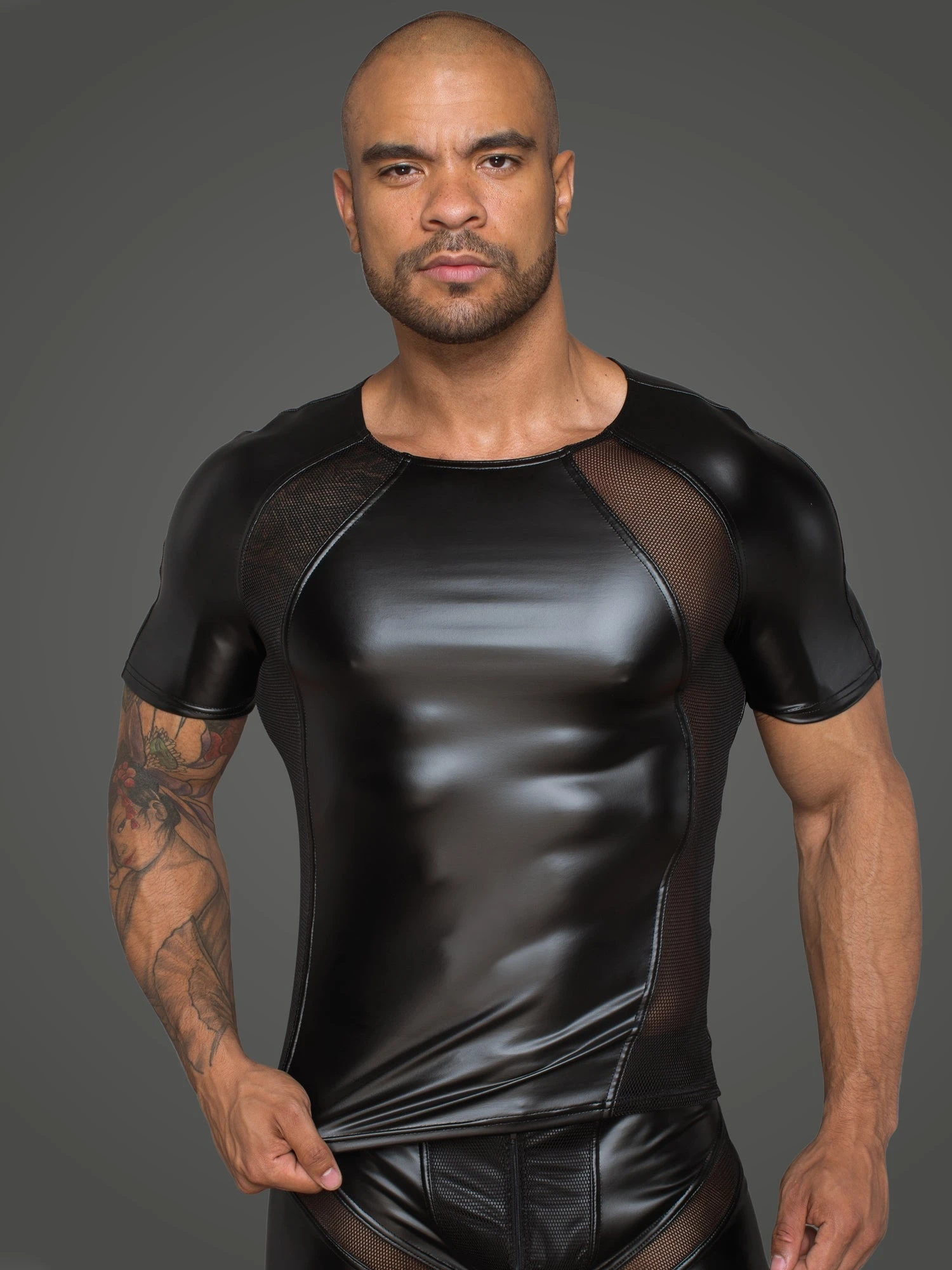 - Made from a comfortable wetlook material that has a shiny gloss.